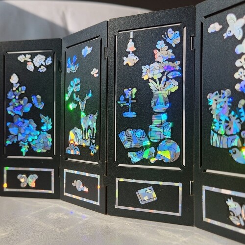 인쇄 우드 DIY 미니어처 검정 무지 4폭 병풍