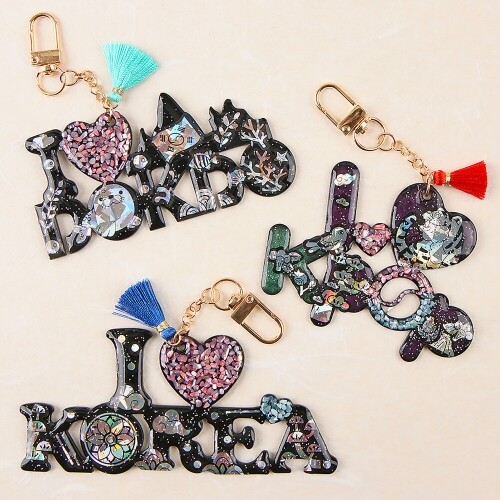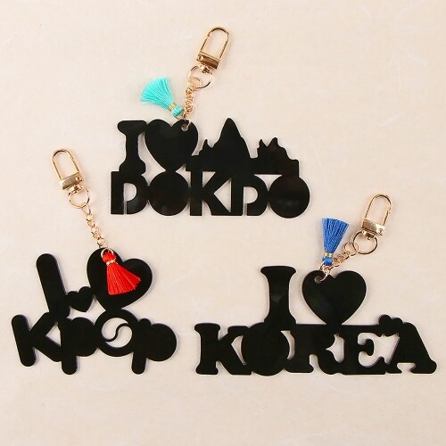 F-05-419~421 / 3종 택1 / 자개스티커, 레진 별도 / 구성품 : 검정아크릴 + 태슬 + D링/ 독도10x4.7cm 코리아12x5.2cm K팝8.5x6.8cm
