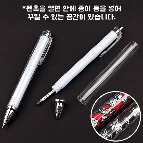 S-07-234 / 자개스티커,배경지 별도구매 / 검정색 볼펜 / 펜촉을 열면 안에 종이를 넣을 수 있는 공간 있음 / 13.3x1.3cm