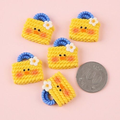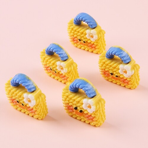 5개입 미니어처 노랑 얼굴 뜨개 손잡이 가방