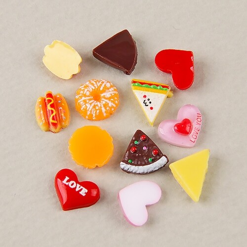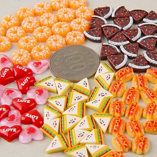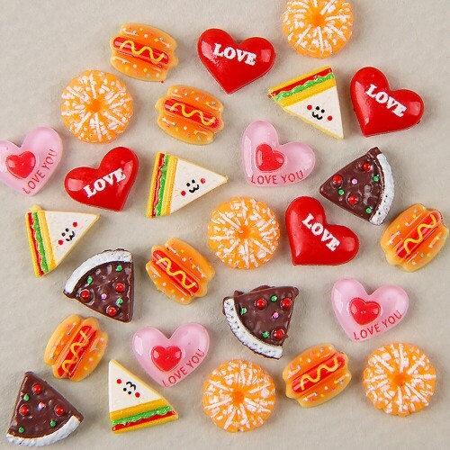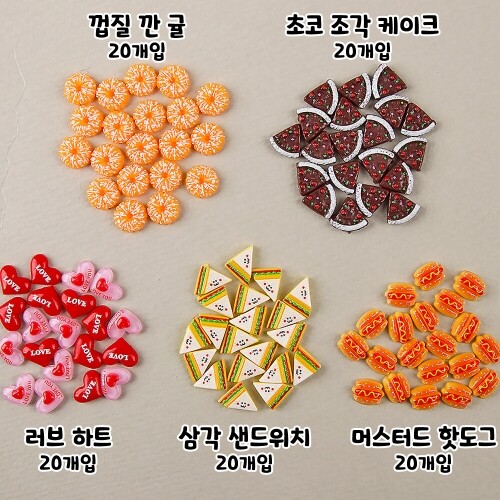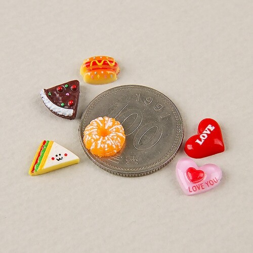 A-26-014~018 / 5종 택1 / 러브 하트는 각 10개씩 20개입 / 귤9x3mm 케이크10x9x3mm 하트10x8x3mm 샌드위치11x7x3mm 핫도그9x7x4mm