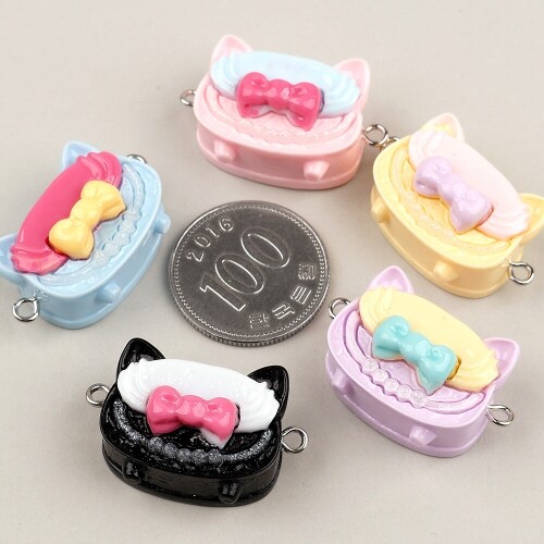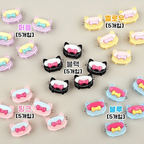 5개입 미니어처 투톤 고양이 리본 가방 고리 핸드백