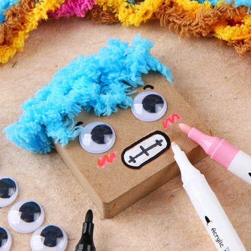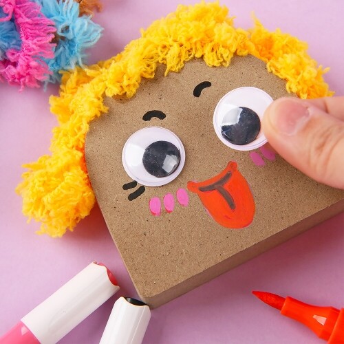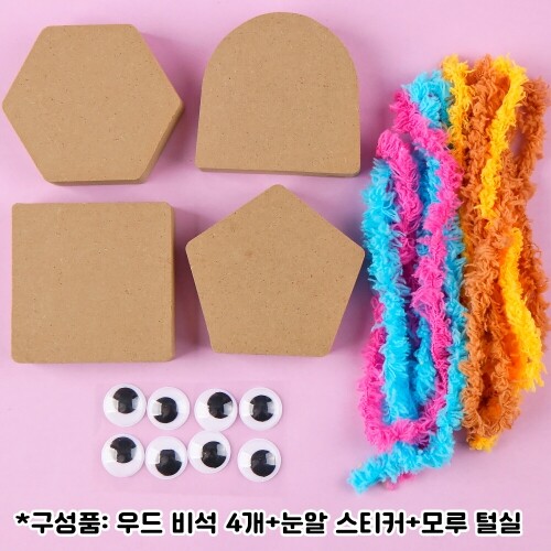 E-07-270 / 4개 1세트 / 꾸미기용 눈알 스티커+털실 포함 / 오각형8.2x7.8cm 사각형7.3x7.3cm