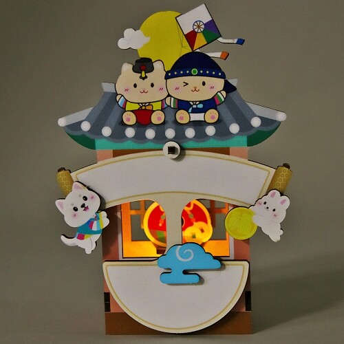 인쇄 우드 DIY 미니어처 기와집 무게 중심 무드등