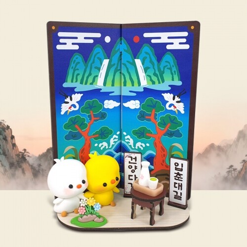 인쇄 우드 DIY 미니어처 일월오봉도 연필 꽂이