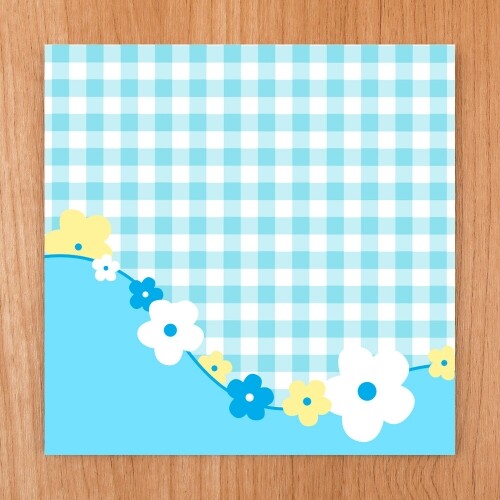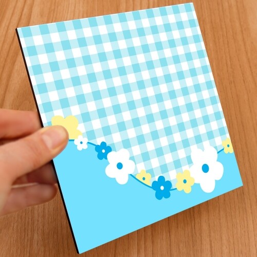 인쇄 우드 꽃 웨이브 블루 깅엄 체크 정사각 데코판