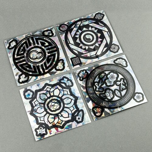 4개입 홀로그램 전통 문양 단청 꽃 자개 스티커