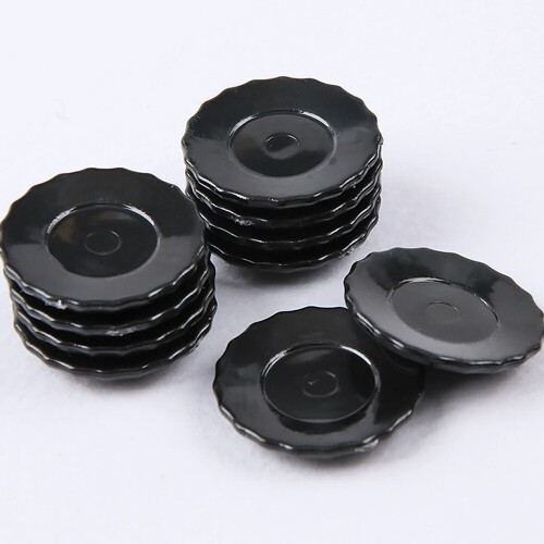 10개입 미니어처 검정 납작 물결 접시