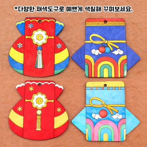 한정 판매 2개입 팬시 우드 전통 문양 복주머니 열쇠고리