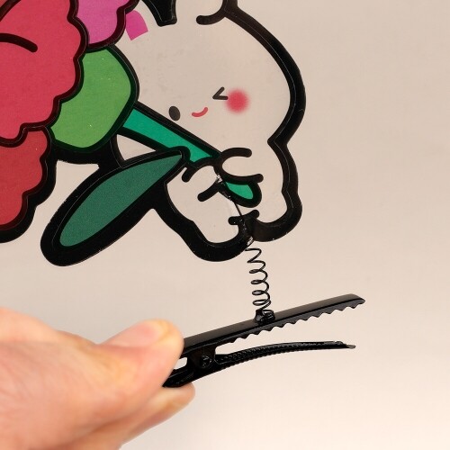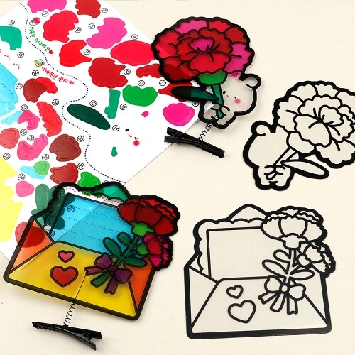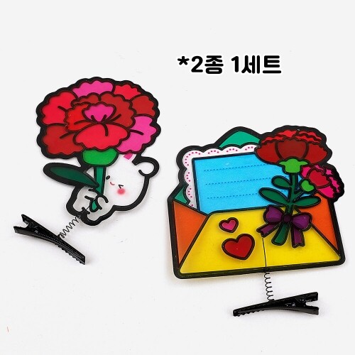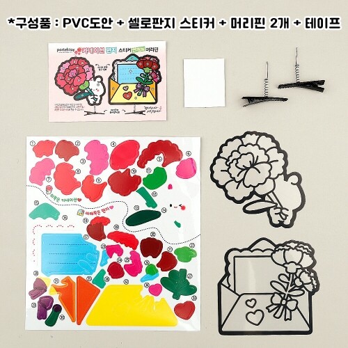 M-02-150 / 핀까지 전체사이즈 - 카네이션토끼8.5x11cm, 카네이션편지9.2x11cm / 구성품 : 스프링 집게핀2개+필름 도안+셀로판지 스티커+투명테이프+집게