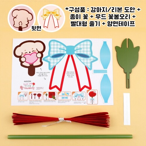 약26x60cm / 구성품 : 강아지/리본 도안 + 종이 꽃 + 우드 꽃봉오리 + 빨대형 줄기 + 양면테이프