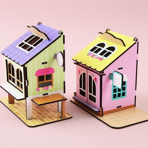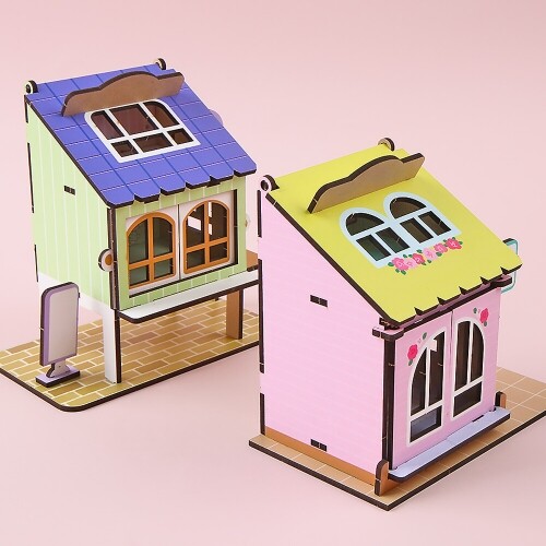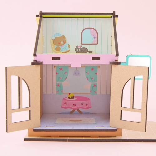 인쇄 우드 DIY 미니어처 2층 창문 하우스 만년 달력 세트
