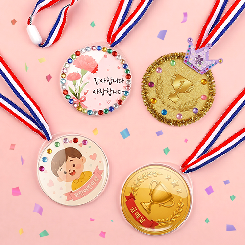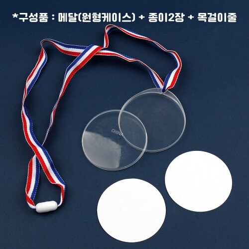 M-07-351 / 꾸미기재료 별도 / 구성품 : 메달(원형케이스) + 종이2장 + 목걸이줄 / 메달-6.2cm, 종이-5.9cm, 목걸이줄-약35cm