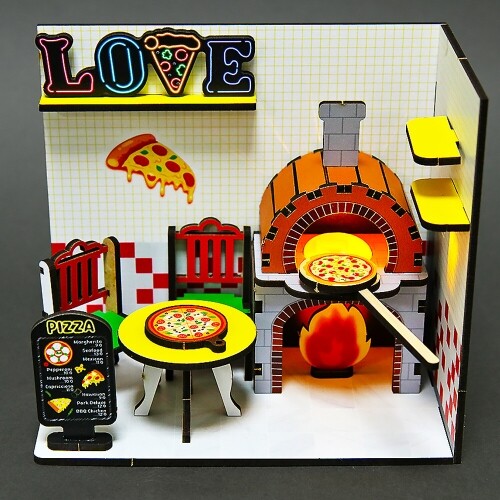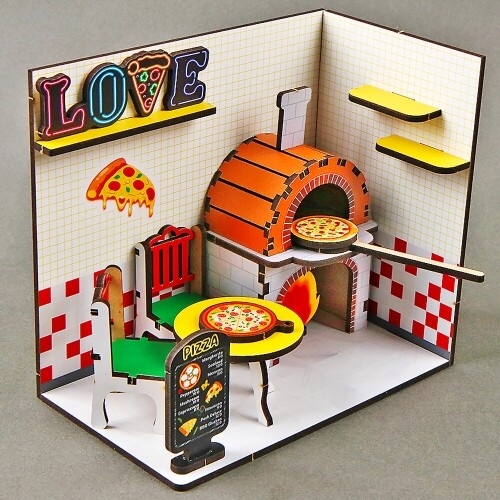 인쇄 우드 DIY 미니어처 러브 화덕 피자 가게 만들기